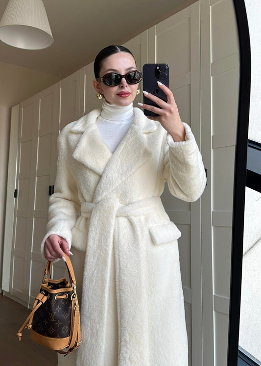 3 AL 2 ÖDEAlpaka Uzun Palto BEYAZ