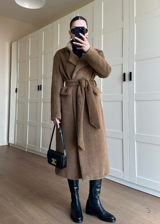 3 AL 2 ÖDEAlpaka Kemerli Ceket KOYU KAHVE