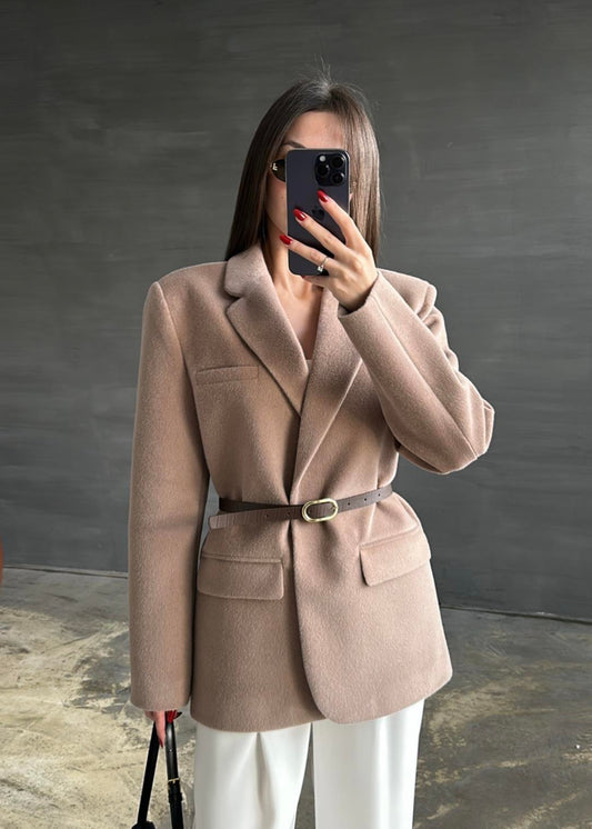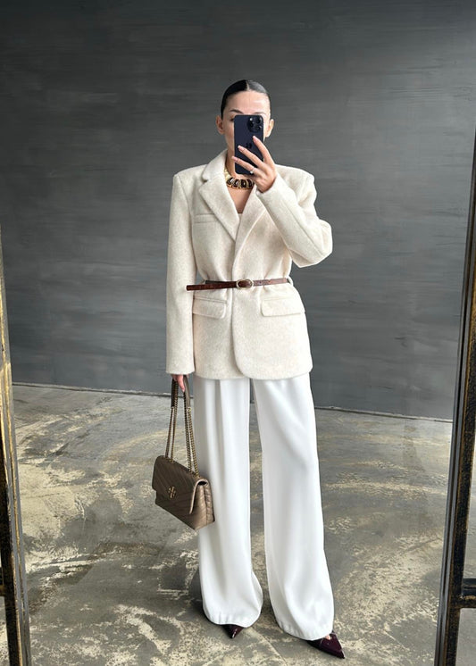 3 AL 2 ÖDEAlpaka Kemerli Ceket EKRU