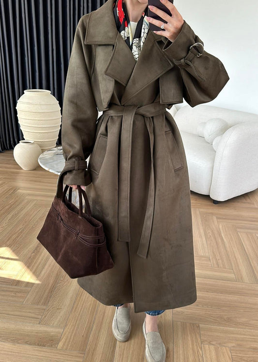 3 AL 2 ÖDEApoletli Süet Trençkot ACI KAHVE