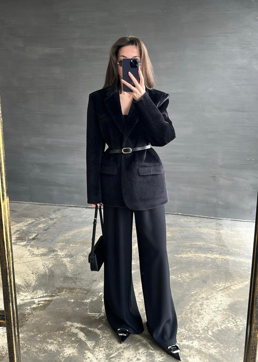 3 AL 2 ÖDEAlpaka Kemerli Ceket SİYAH