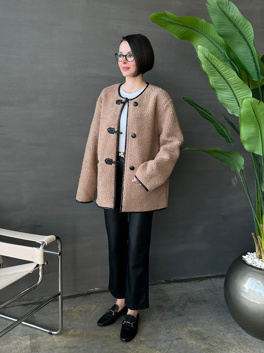 3 AL 2 ÖDEAplikeli Kürklü Mont CAMEL