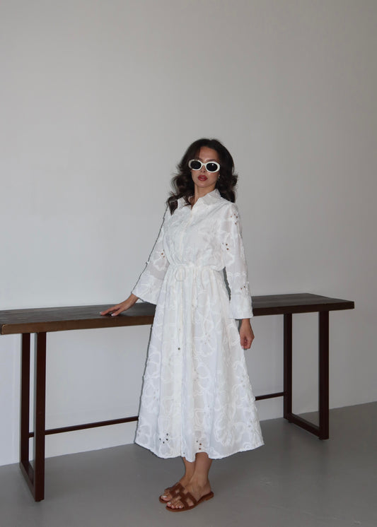 3 AL 2 ÖDEBeli Bağcıklı Brode Elbise BEYAZ