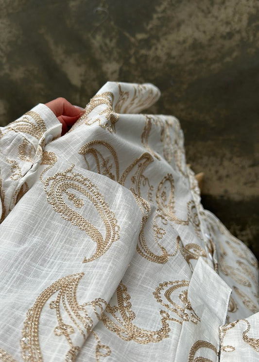 3 AL 2 ÖDEGold İşlemeli Keten Elbise EKRU