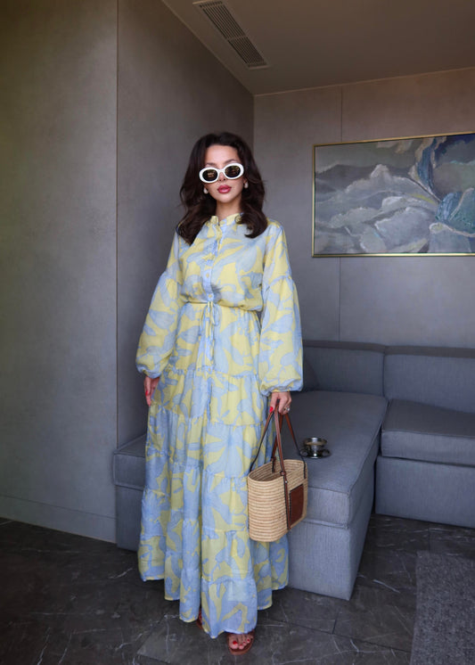 3 AL 2 ÖDENervürlü Pamuk Vual Elbise SARI