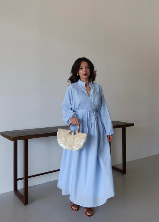 3 AL 2 ÖDENervürlü Pamuk Vual Elbise BEBE MAVİSİ