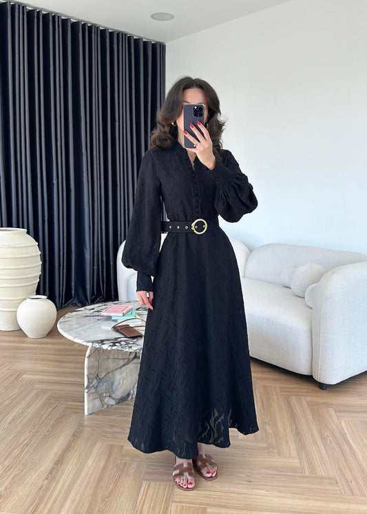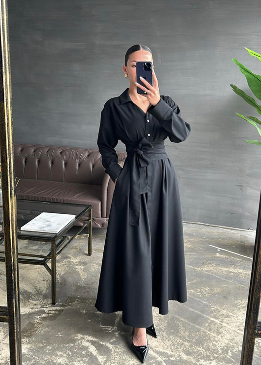 3 AL 2 ÖDEKuşaklı Elbise SİYAH