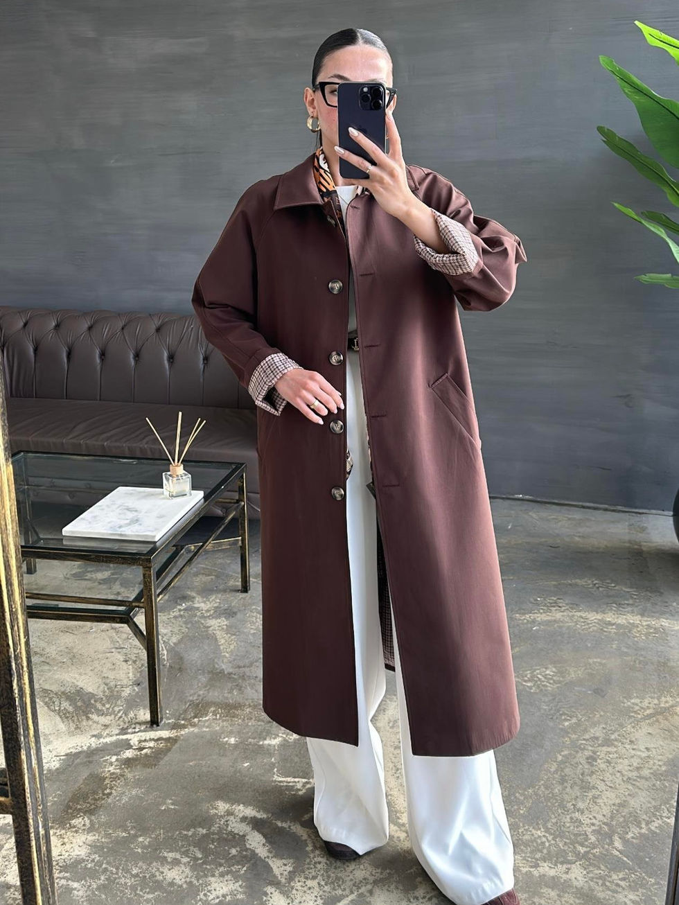 Astarı Kazayağı Desen Trençkot ACI KAHVE